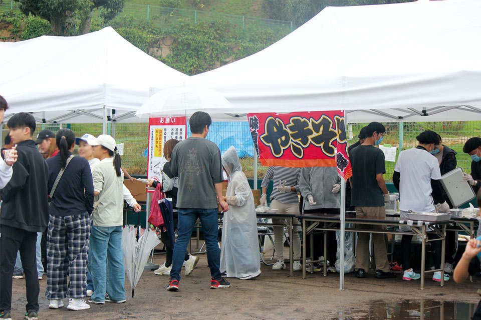 神戸合成では、例年通り焼きそばの模擬店を出店しました。今年も食中毒や感染症予防対策を徹底し調理しました。開会式後に雨で競技が一時中断していたので、その間にお客さんが屋台に集中して来ました。今年も大盛況で、たくさんの方に提供することができました。行列が出来、タイミングによってはお待たせしてしまった方は申し訳ございませんでした。